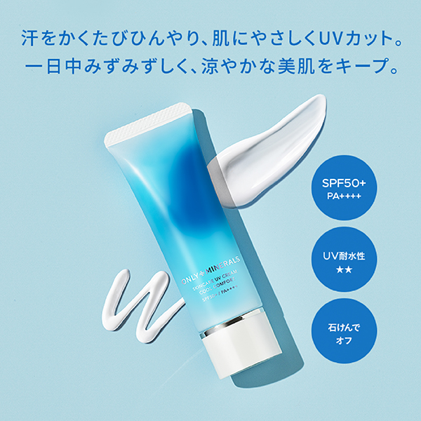 汗をかくたびひんやり、 肌にやさしくUVカット。 一日中みずみずしく、 涼やかな美肌をキープ。