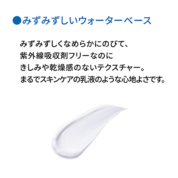 みずみずしくなめらかにのびて、紫外線吸収剤フリーなのにきしみや乾燥感のないテクスチャー。