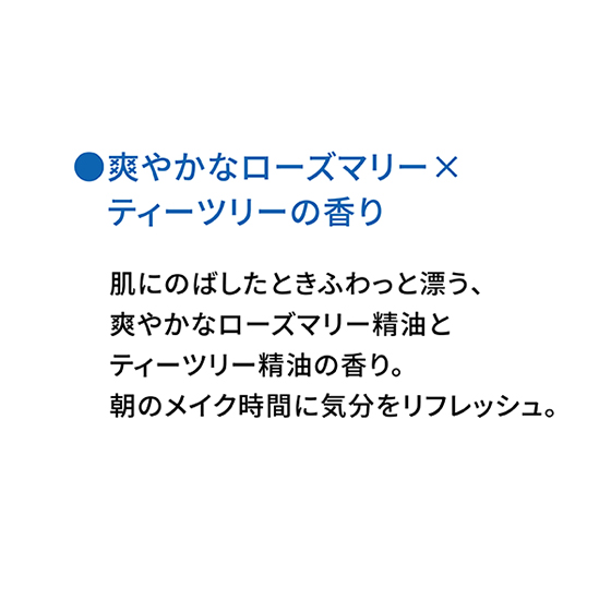 肌にのばしたときふわっと漂う、爽やかなローズマリー精油とティーツリー精油の香り。
