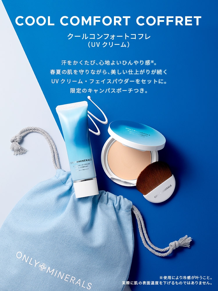 ひんやり冷感タイプのUVクリーム・UVパウダーがセットに。巾着型のポーチつき。