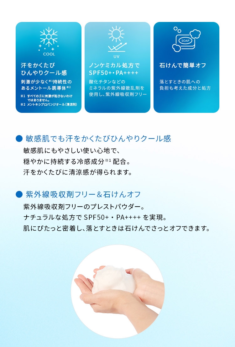 ブラシでさっとひとはけ、ひんやりさらさらの涼顔に仕上げる冷感UVパウダー。