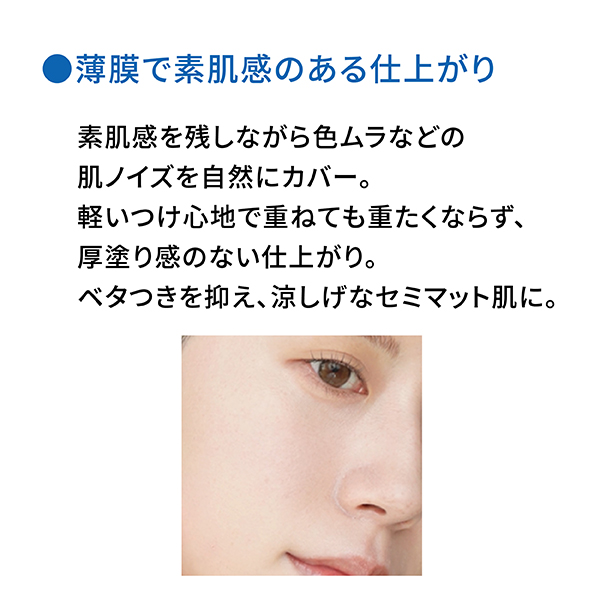 汗や皮脂にも崩れにくく、涼しげなセミマット肌をキープします。