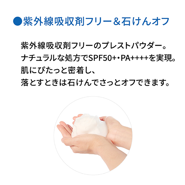 紫外線吸収剤フリーの肌にやさしいパウダーで、一日中快適に過ごせます。