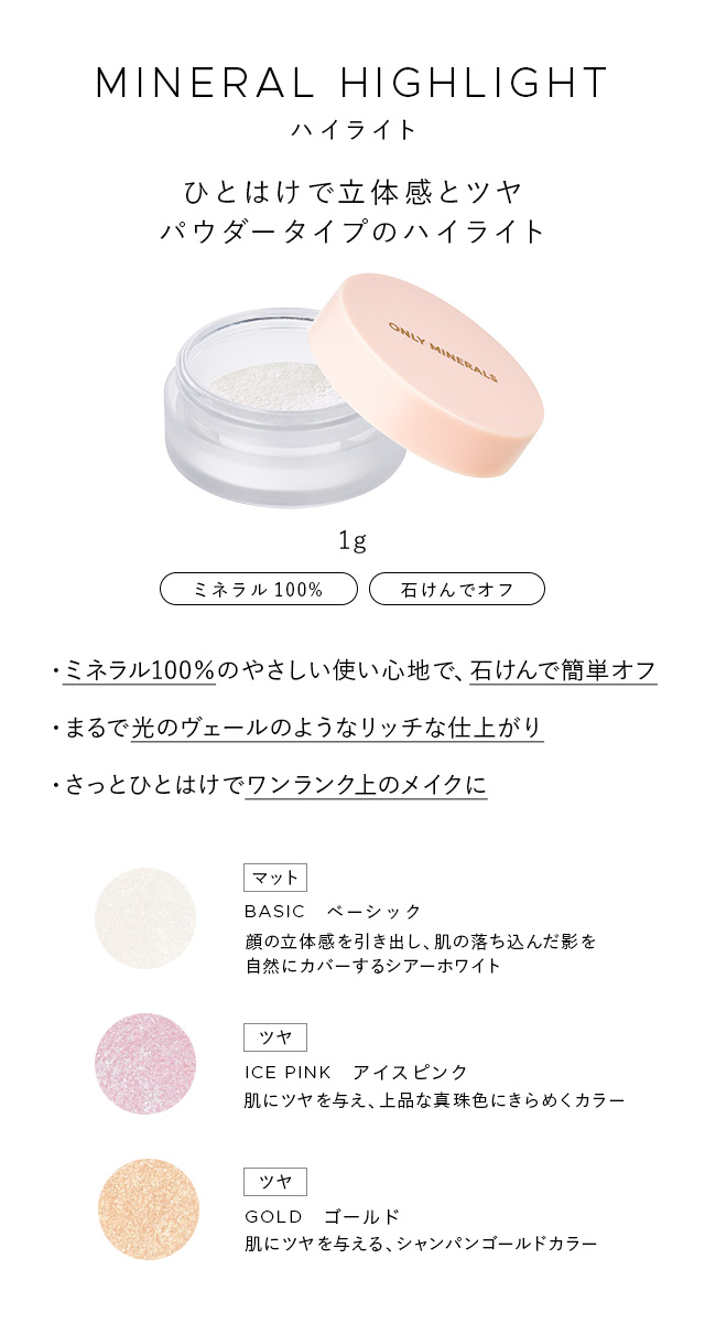 ベーシック:顔だちそのものを美しく引き立て、肌の落ち込みを感じさせる影を自然にカバーするホワイトのパウダー