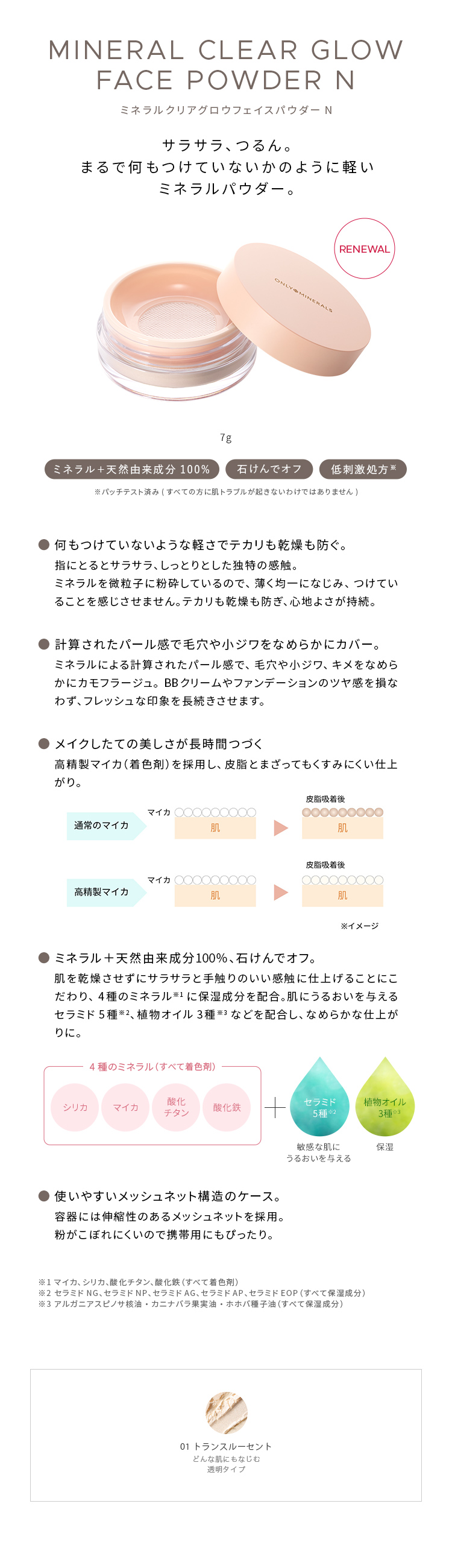 ミネラルを微粒子に粉砕しているので、薄く均一になじみ、つけていることを感じさせません。