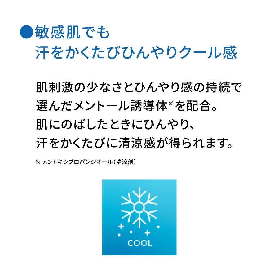 肌刺激の少なさとひんやり感の持続で選んだメントール誘導体*2を配合。