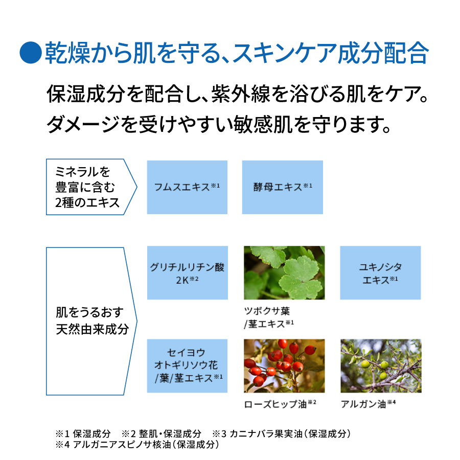 保湿成分を配合し、紫外線を浴びる肌をケア。