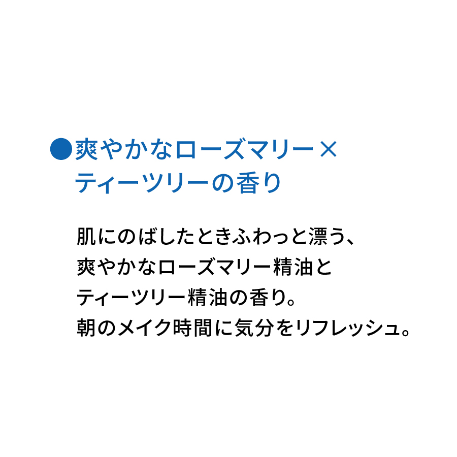 肌にのばしたときふわっと漂う、爽やかなローズマリー精油とティーツリー精油の香り。