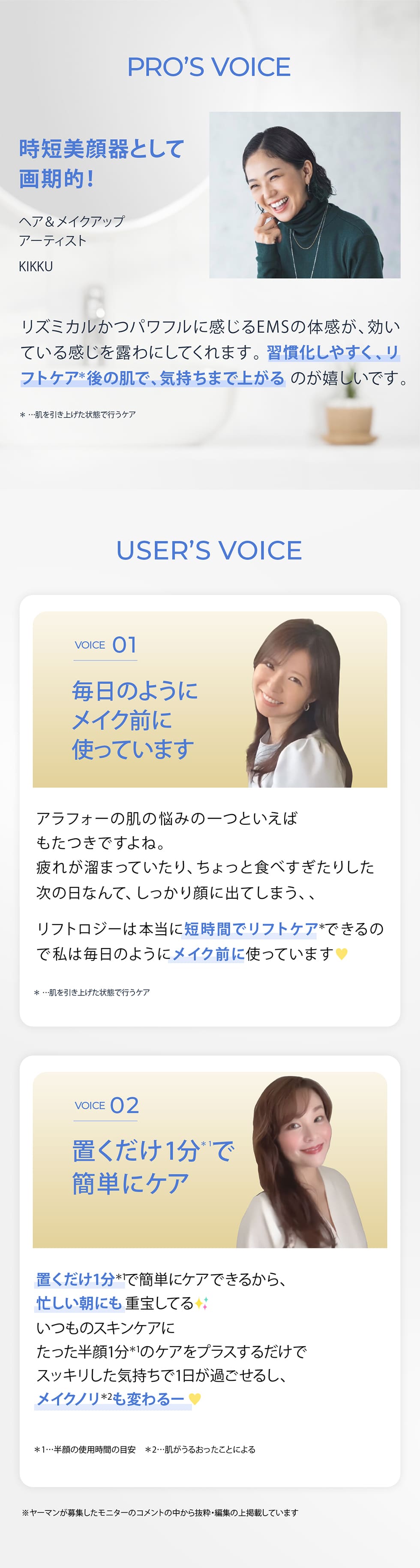 表情筋を深く大きく動かす「LIFT WAVE TECHNOLOGY」で1回1分 のリフトアップ*1