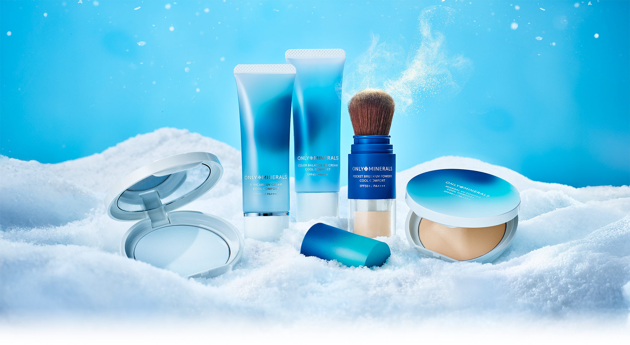 夏のUVメイクを、もっと涼やかに楽しみたい。 そんな願いを叶えてくれる「クールコンフォートシリーズ」。 毎年人気のUV下地とパウダー、BBクリームに加えて、 日中の塗りなおしに便利なブラシ一体型パウダーが新登場。 ミネラル+天然由来成分の守りとケアはそのままに、 汗をかくたび、敏感肌にもやさしい※スーッとした清涼感を楽しめます。 心地よさはもちろん、美しさとうるおい感も長時間キープ。