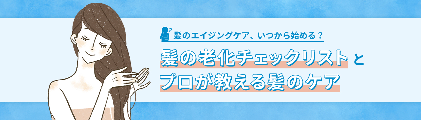 髪の老化ケアは“何歳から”ではなく、チェックリストに当てはまるものが1つでもあれば、髪のエイジングケアの始めどき。「髪の老化」は誰にでも訪れるものですが、ヘアケア次第で髪は変えられます。いつまでもつややかでふんわり髪を楽しみましょう。