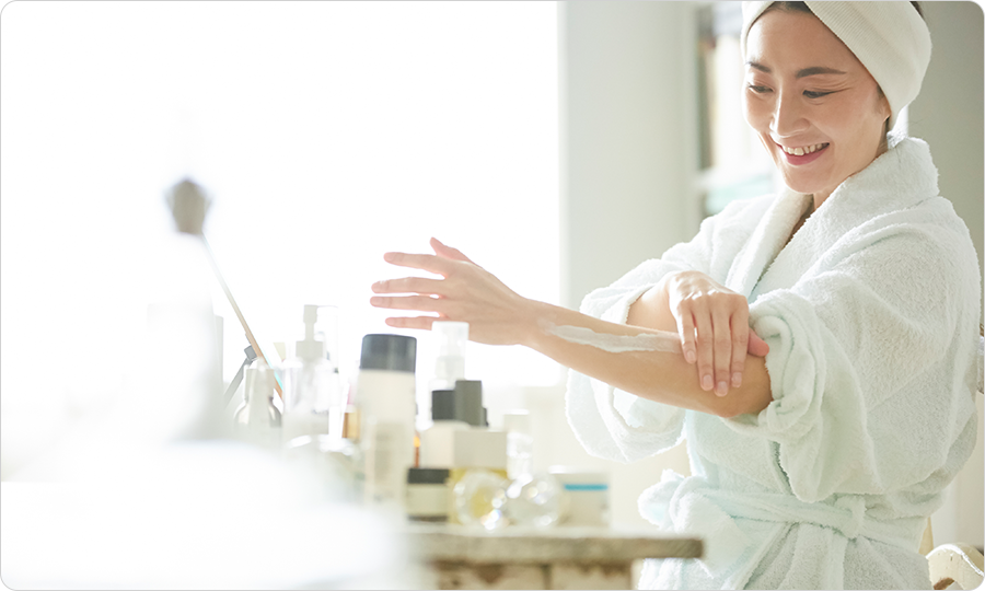 大人世代はボディの保湿もおすすめします。しわっぽく乾燥した肌は老けて見えるため、顔だけでなくボディもしっかり保湿してあげましょう。もっちりとうるおいのある肌に変わっていきますよ。
