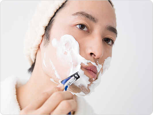 「ひげ剃りにはカミソリ型や電気シェーバーなど種類がありますが、いずれも肌に負担をかけているのは同じです。ひげ剃りによって肌が乾燥したりカミソリ負けを起こしたり、赤みがでたり。ひげ剃り跡が粉を吹いたようになっていることも。剃った部分は角質が薄くなっているので、トラブルが起きやすいのです。傷があると炎症を起こす場合もあります。でも、でもスキンケアをきちんと行えば、肌の土台が整うため格段に剃りやすくなり、肌トラブルも減っていきます」