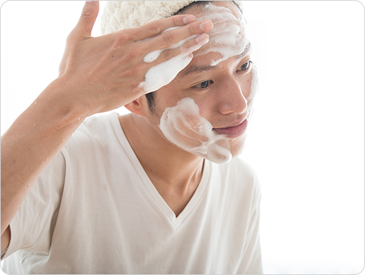 「ボディソープや石鹸で顔を洗うという男性は、意外と多い印象です。また、朝は水やお湯だけ、あるいは洗わないという強者も。皮脂分泌が多い男性の肌は、洗顔がとても大切。泡タイプの洗顔用フォームで夜と朝、洗うようにしましょう。毛穴の汚れも取れて清潔感が格段に上がります。