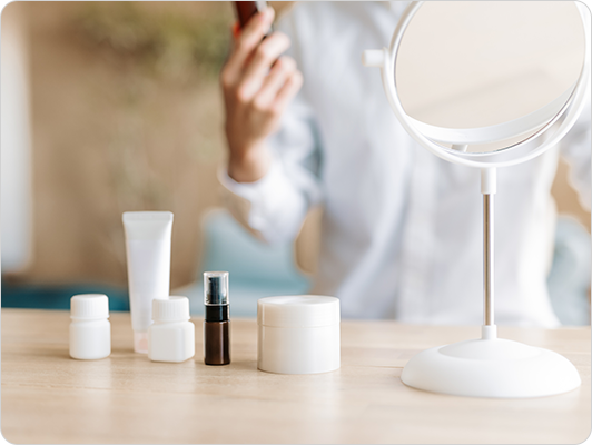 「ローションだけでよいのか、クリームも必要なのかは、個々の肌の状態によって異なります。まずは一週間続けてみて、油分が過剰だと感じたらクリームを控え、うるおいが足りないと感じたらローションをたっぷり使うなど、自分なりにアレンジしてみましょう」