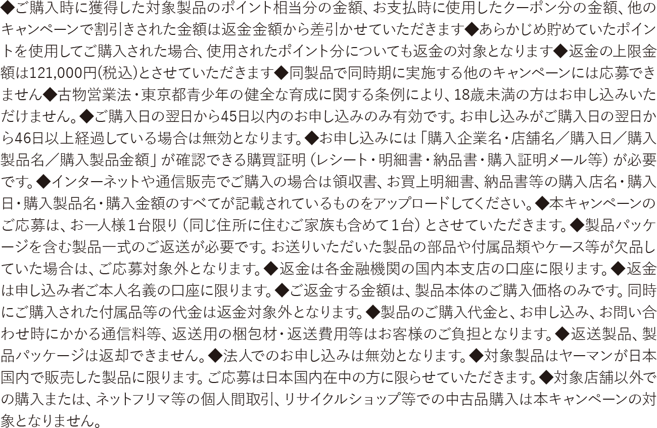 GUIDEご利用ガイド お届けと配送料についてはこちら 販売数と転売について お一人様1つの商品に対して2台までのご購入とさせていただきます。複数のアカウントからの注文や数回に分けての注文も含め、3台以上のご購入が確認できた場合、キャンセルさせていただきます。 当店では転売目的の購入を禁止させていただいております。転売目的との疑いが出た場合、キャンセルとさせていただきますのでご了承ください。 お支払方法、お支払時期についてはこちら アフターサービス(返品・交換)についてはこちら Copyright © YA-MAN Ltd. All rights reserved.