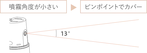 噴霧角度が約13度のフォーカスエアー設計だから、カバーしたい部分に思い通りにフィットします。ご使用方法に慣れないうちや気になる場合には、タオルなどでカバーすることをおすすめします。